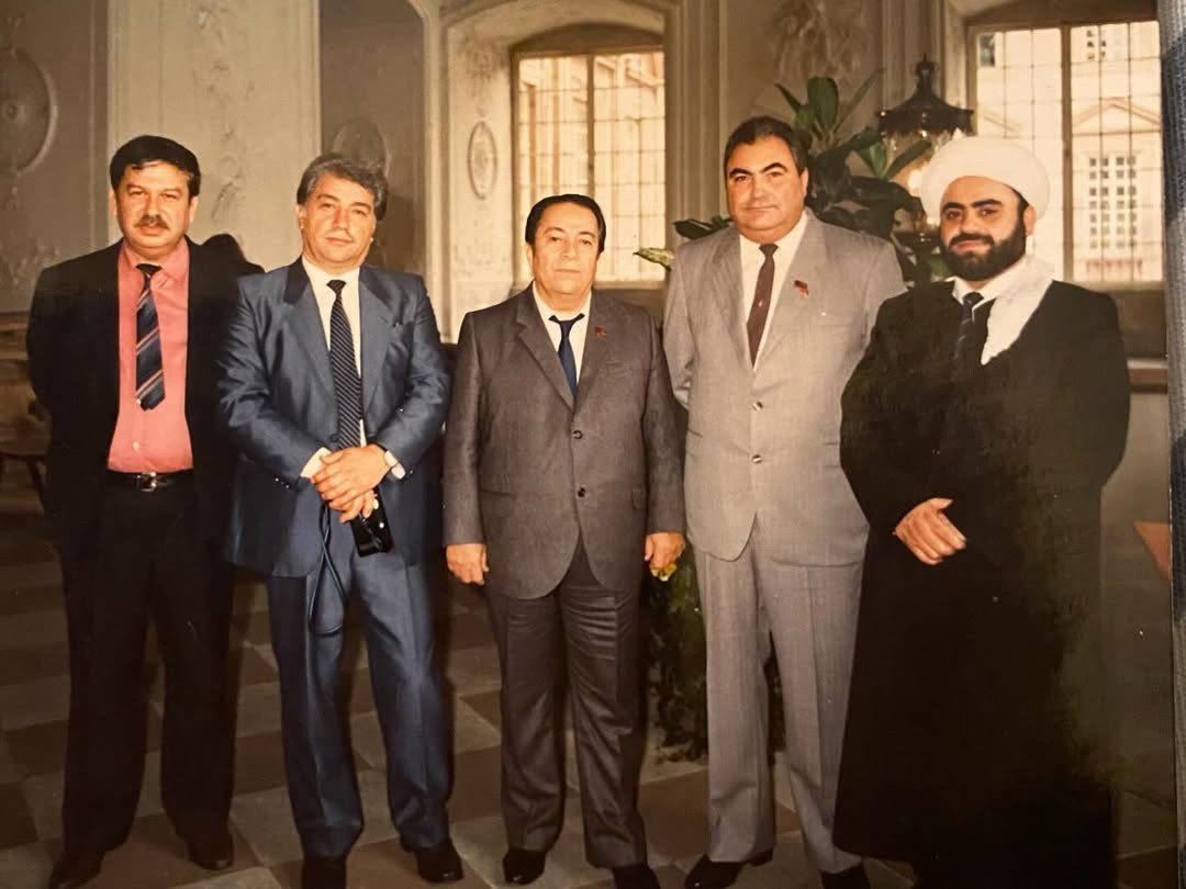 Fotoda unudulmaz müğənni Rəşid Behbudov, Rəhim Hüseynov və Şeyx Həzrətləri Allahşükür Paşazadə və digərləri yer alıb.